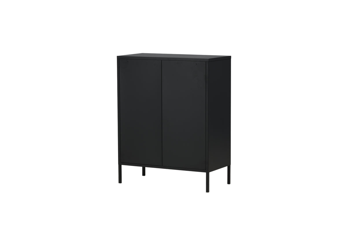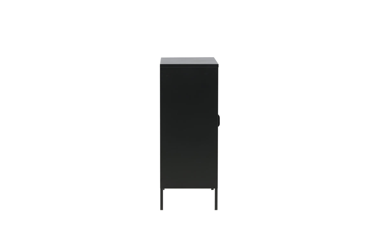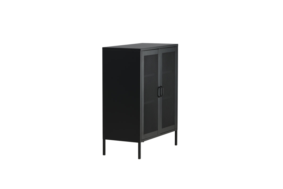 Misha, i en tuff industriell design med läckra nätdörrar och ben tillverkade i svart pulverlackerad stål med 3 smarta avlastningsytor. Skåpet lyfts upp av smala, höga ben som skapar en luftig känsla och underlättar även för dammsugaren.