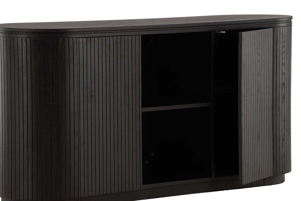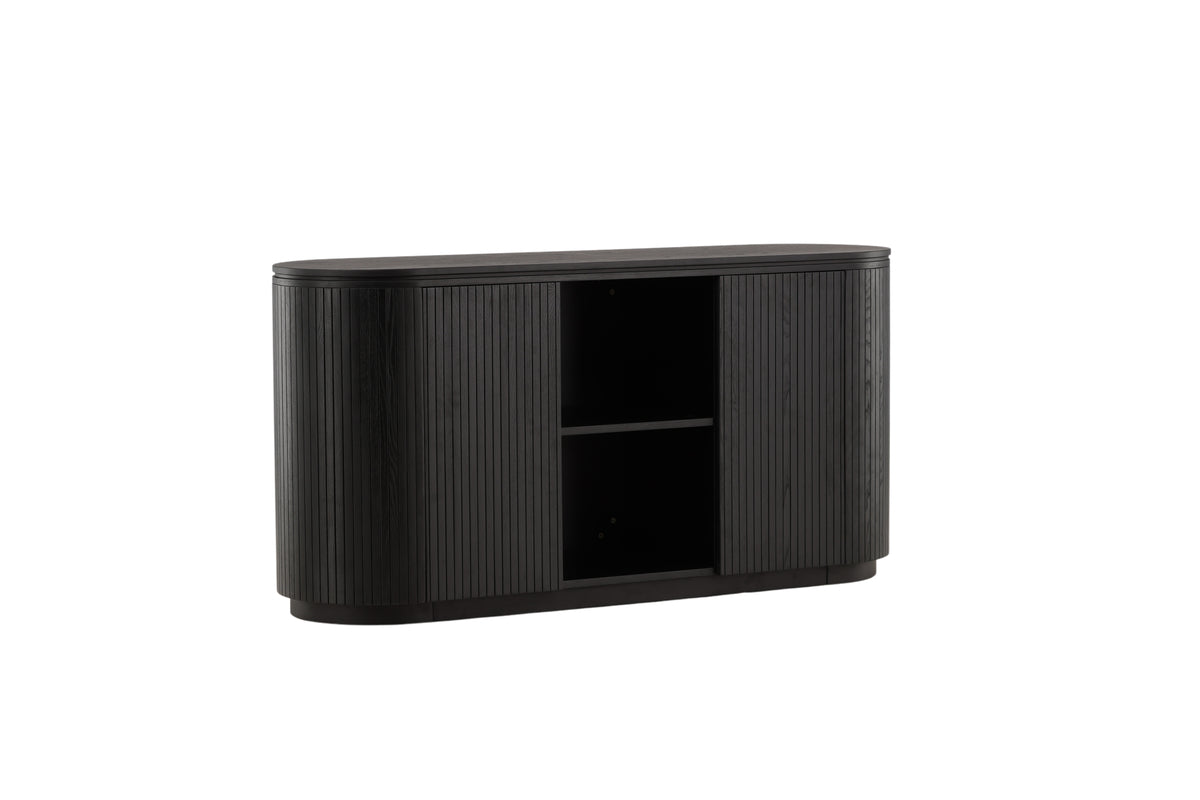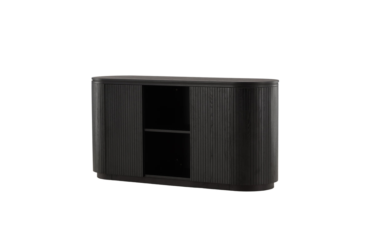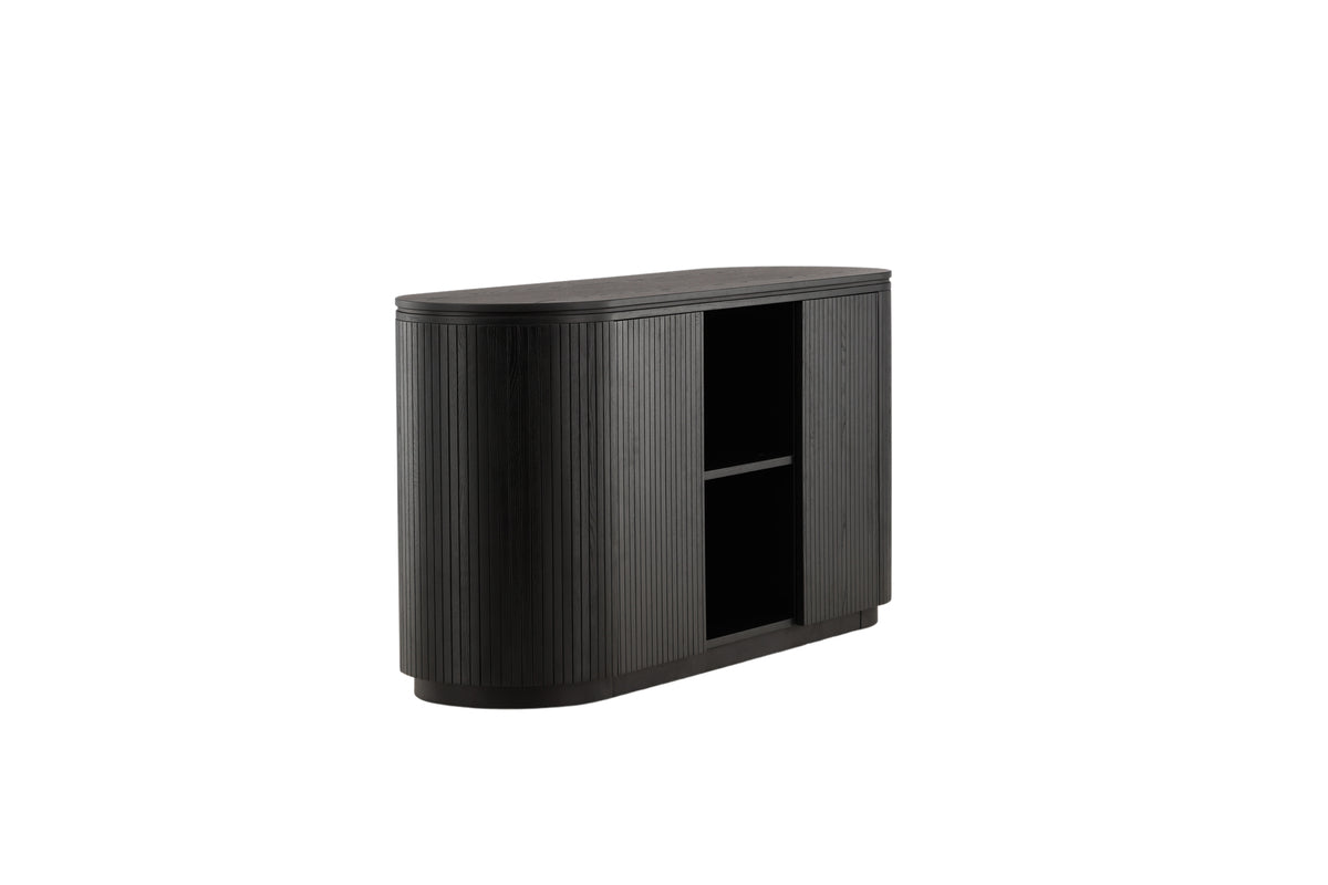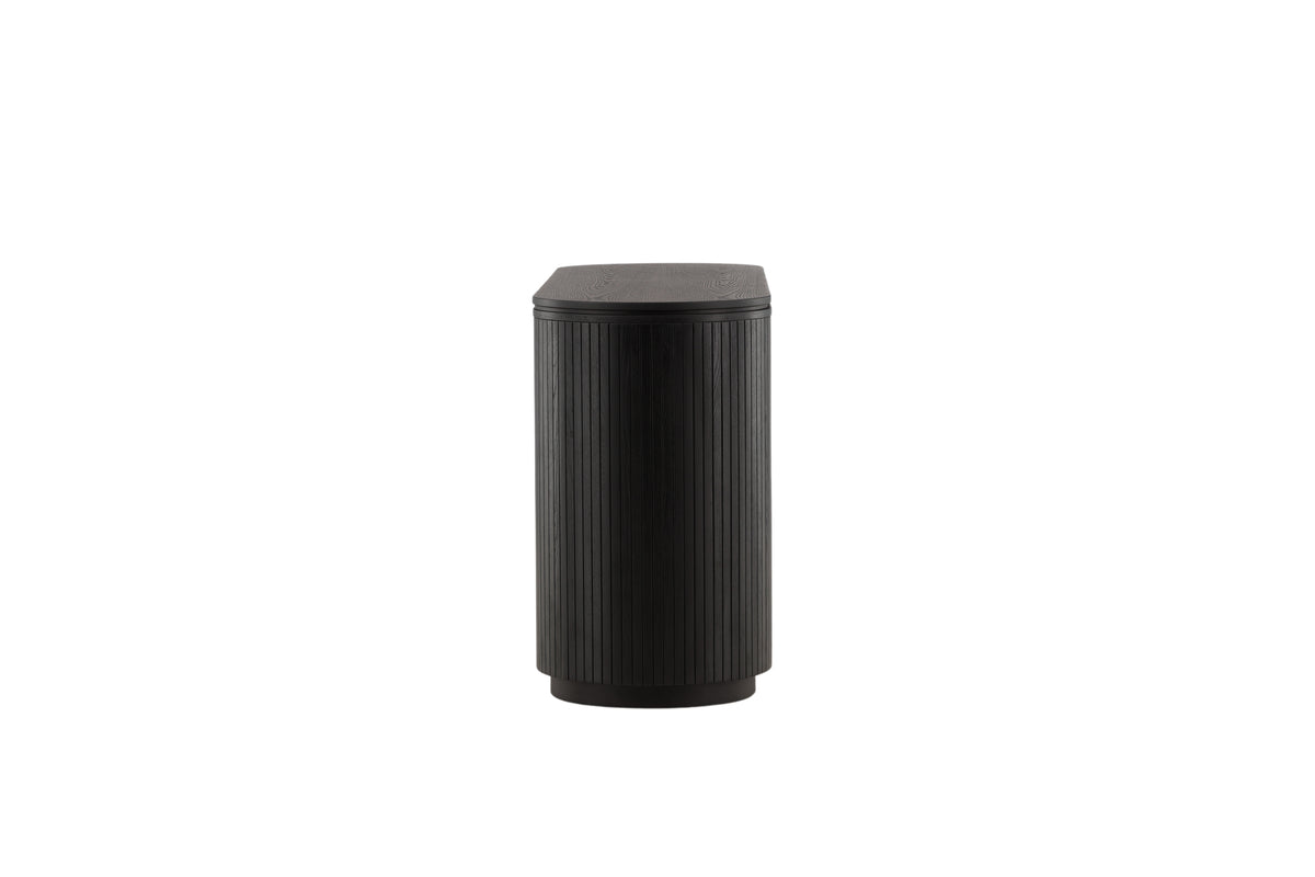 Ett ovalt avlastningsskåp som möjliggör både synlig och dold förvaring! Det här trädsäkra skåpet från serien Fjällbacka tillhör Vind kollektionen och har en smäcker, Skandinavisk design som drar blickarna till sig! Tillverkad i svart ek med faner och har skåp för dold förvaring och två öppna hyllplan som passar utmärkt för lite vackra inredningsdetaljer eller små ljuslyktor. Höj stilnivån i ditt hem med ett trendsäkert förvaringsskåp som står sig över tid!